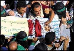 وسار المشاركون في الجنازة وسط دعوات للثأر والجهاد اطلقتها الحشود التي تعتبر بين الاكثر عددا في مثل هذه المناسبة منذ بداية الانتفاضة الفلسطينية في نهاية ايلول/سبتمبر.