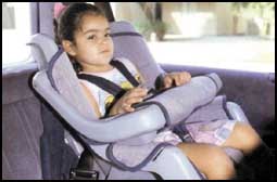 الطفل الذي يستطيع الجلوس دون مساعدة )يزيد عمره عادة على 12 شهراً( ينبغي أن يجلس على مقعد السلامة المخصص للوضع فوق مقعد السيارة والذي يكون في وضع مستقيم،وبحيث يكون وجه الطفل متجها إلى الأمام مع ربط الحزام. وقد صُممت هذه المقاعد لاستعمالها مع احزمة مقاعد السيارة، فضلا عن انها تحتوي على اربطتها ومستلزماتها الخاصة. وحتى يؤدي المقعد المهمة المناطة به حسب التصميم، تأكَّدْ من اتباع تعليمات الشركة المصنِّعَة بخصوص تركيب مقاعد السلامة. ويجب ان يوضع هذا المقعد على المقعد الخلفي للسيارة.