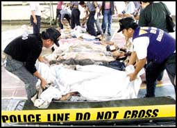 التهم حريق هائل فندقا في ضاحية مانيلا ليحوله الى جحيم اذ اتضح ان الفندق ليس مزودا بمخارج طوارئ كما ان نوافذه مغلقة بقضبان حديد مما أدى الى مقتل75 شخصا على الأقل كانوا يشاركون في تجمع لطائفة مسيحية.