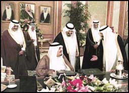 رأس خادم الحرمين الشريفين الملك فهد بن عبدالعزيز آل سعود حفظه الله الجلسة التي عقدها مجلس الوزراء بعد ظهر امس الاثنين في قصر السلام بمحافظة جدة.