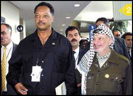 من جهته دعا الرئيس الفلسطيني ياسر عرفات أمس الجمعة في دوربان المؤتمر الدولي حول العنصرية «للوقوف بجانبنا، بجانب العدالة والشرعية الدولية التي تقوم الحكومة الإسرائيلية بدوسها».