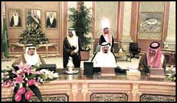 وفي بداية الجلسة اطلع خادم الحرمين الشريفين المجلس على فحوى محادثاته مع فخامة الرئيس ياسر عرفات رئيس دولة فلسطين التي تركزت على ما يتعرض له الشعب الفلسطينى كل يوم من اعتداءات إسرائيلية وحشية وانتهاكات مستمرة تتنافى وأبسط حقوق الإنسان .