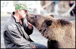 الروسي نيوكولاي كريبشانكوف يستسلم لقبلات الدبة «ماريا» وهي واحدة من ثلاث دببة يعيشون جميعاً في منزل هذا الشاب الذي أنقذهم من الموت بعد أن وجدهم صغاراً دون مأوى بسبب الصيد العشوائي الذي أودى بحياة أمهم. والآن وبعد مرور أربع سنوات على تلك الحادثة تستعد الدببة التي تعلمت كيفية الاعتماد على نفسها لمغادرة منزل صديقها نيوكولاي وربما كانت هذه قبلة الوداع.