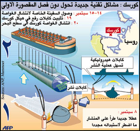 أعلنت قيادة أسطول الشمال الروسي يوم السبت الماضي ان عطلا جديدا طرأ على المنشار المستخدم في فصل المقصورة الأولى من الغواصة النووية كورسك ما اضطرلاستبداله مجددا.