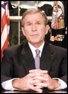 وادلى بوش بكلمته بعد عودته إلى واشنطن قادما من فلوريدا. وعلم بوش بالهجمات اثناء زيارة لمدرسة ابتدائية في ساراسوتا بفلوريدا.