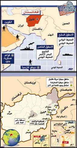 في غضون ذلك حذرت حركة طالبان الحاكمة في افغانستان واشنطن من انها سترد إذا شنت الولايات المتحدة هجمات عسكرية كما حذرت الدول المجاورة لها من تقديم المساعدات للقوات الأمريكية، وقد طلبت حركة طالبان من جميع الاجانب مغادرة افغانستان باسرع وقت حتى لا يتعرضوا للخطر، كما بدأت بحفر خنادق لحماية كابول ونشر المدافع والصواريخ المضادة للطائرات.