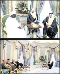 كما استقبل خادم الحرمين الشريفين الملك فهد بن عبدالعزيز آل سعود حفظه الله في مكتبه بقصر السلام أمس سفراء المملكة المعينين في عدد من الدول وهم: محمد عبدالرحمن الشايع لدى جمهورية غينيا وعبدلله سليمان الحمدان لدى جمهورية البانيا وأسامة أحمد السنوسي لدى جمهورية بولندا ومحمد محمود العلي لدى جمهورية سيريلانكا.