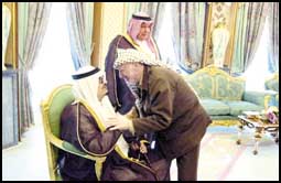 من جهة اخرى استقبل صاحب السمو الملكي الأمير عبدالله بن عبدالعزيز ولي العهد ونائب رئيس مجلس الوزراء ورئيس الحرس الوطني في مكتبه بالديوان الملكي بقصر السلام في جدة امس فخامة الرئيس ياسر عرفات رئيس دولة فلسطين والوفد المرافق له.