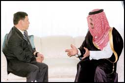 وأوضح البيان ان صاحب السمو الملكي الأمير سعود الفيصل وزير الخارجية نقل رسالة من خادم الحرمين الشريفين الملك فهد بن عبدالعزيز آل سعود إلى جلالة الملك عبدالله الثاني.
