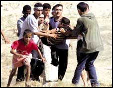 وفي الخليل بالضفة الغربية قال مسؤولون بمستشفى فلسطيني ان الجنود الاسرائيليين قتلوا بالرصاص فلسطينيا امس الجمعة في الذكرى السنوية الاولى للانتفاضة. وانتشرت الشرطة الاسرائيلية بشكل مكثف .