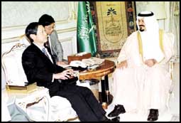 كما حضر المقابلة القائم بالأعمال في السفارة اليابانية لدى المملكة اوتسوكا.