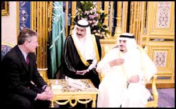 استقبل خادم الحرمين الشريفين الملك فهد بن عبدالعزيز آل سعود حفظه الله في مكتبه بقصر اليمامة أمس عضو الكونجرس الأمريكي روبرت واكسلر ورئيس مركز السلام والتعاون الاقتصادي للشرق الاوسط في واشنطن واين أوينز.