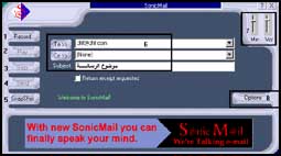 1 Record a Sonicmail وهي للبدء بتسجيل الرسالة الصوتية حيث يبدأ البرنامج بالتسجيل مباشرة عند الضغط على هذا الخيار مع مراعاة إعدادات الصوت التي سيتم توضيحها لاحقا.