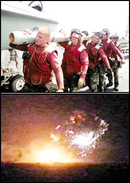 إلى ذلك قال مسؤولون بوزارة الدفاع الامريكية إن طائرات قاذفة من طراز بي 52 وبي 1 استهدفت مواقع طالبان بقنابل «عنقودية» وقنابل اخرى في الوقت الذي قصفت فيه طائرات حربية تابعة لسلاح الجو والبحرية الامريكية اهدافا عسكرية في كل انحاء افغانستان خلال الليل وحتى امس الخميس.
