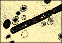 ومن المعروف أن مرض الجمرة الخبيثة المميت غير المعدي، يظهر بصورة طبيعية في بكتريا رمم الحيوانات الملوثة.
