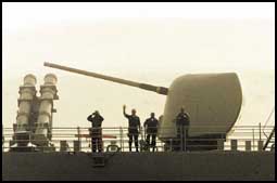 وتوجهت حاملة الطائرات يرافقها الطراد لايت جلف وسفينة المعاونة ديترويت جنوبا عبر القناة ضمن أكبر حشد امريكي منذ حرب الخليج.