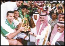 لاعبو المنتخب عرفوا كيف يختارون الهدية المناسبة لتقديمها لراعي البطولة الأمير نواف بن فيصل.