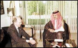 استقبل صاحب السمو الملكي الأمير سعود الفيصل وزير الخارجية أمس سفير الولايات المتحدة الامريكية المعين لدى المملكة روبرت جوردان الذي سلم لسموه صورة من أوراق اعتماده تمهيدا لتقديمها لخادم الحرمين الشريفين الملك فهد بن عبدالعزيز سفيرا لبلاده لدى المملكة.