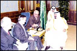 ونقل معاليه لصاحب السمو الملكي الأمير عبدالله بن عبدالعزيز خلال المقابلة تحيات وتقدير جلالة الملك خوان كارلوس ملك إسبانيا.
