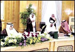 رأس خادم الحرمين الشريفين الملك فهد بن عبدالعزيز آل سعود حفظه الله الجلسة التي عقدها مجلس الوزراء بعد ظهر أمس الاثنين في قصر اليمامة بمدينة الرياض.