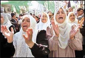 وأعلنت حركة المقاومة الاسلامية «حماس» في بيان أن ثلاثة من أعضائها استشهدوا امس ضد مستعمرة يهودية في غزة انتقاما من المذبحة الاسرائيلية التي ترتكب ضد الشعب الفلسطيني مشيرة الى ان الشهداء هم فؤاد الدهشان «17 عاما» وعثمان الرزاينة «23 عاما» وإياد البطش «21 عاما». وذكر راديو اسرائيل أن أحد البدو من عرب فلسطين 48 لقي مصرعه أيضا بعد أن أطلق عليه الرصاص بينما كان يحاول الاختراق بجراره سياج حدودي بين قطاع غزة ومزرعة ناحل عوز الجماعية.