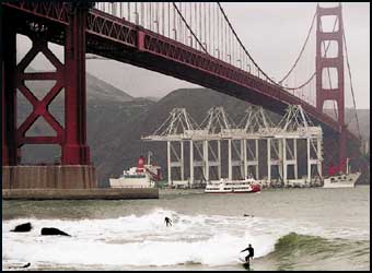 من جهة أخرى أعلن جراي ديفيز حاكم ولاية كاليفورنيا امس أن قوات الحرس الوطني الامريكي ستقوم بحراسة شبكة الجسور المعلقة بطريق جولدن جيت أو البوابة الذهبية ومنطقة الخليج عقب تلقي «تهديد جاد» ضد هذه المعالم الحيوية بالولاية الغربية. وقال ديفيز «يجب علينا وقد عقدنا العزم على أن نحمي مواطني كاليفورنيا والممتلكات الحيوية لهذه الولاية». وأمر حاكم الولاية بنشر قوات خفر السواحل والحرس الوطني بمناطق الجسور الأخرى والمباني والمنشآت الحيوية في أنحاء ولاية كاليفورنيا التي تقع على الساحل الغربي للبلاد وتعتبر أغنى الولايات وأكبرها تعدادا. يذكر أن السلطات في أنحاء البلاد وضعت في حالة تأهب قصوى بالقرب من موارد المياه وفرضت «الحظر الجوي» في مناطق المفاعلات النووية وبنى أساسية أخرى منذ وقوع الهجمات الارهابية في 11 أيلول سبتمبر الماضي بطائرات مخطوفة دمرت ناطحتي سحاب مركز التجارة العالمي في نيويورك وجانبا من مبنى وزارة الدفاع البنتاجون بواشنطن.