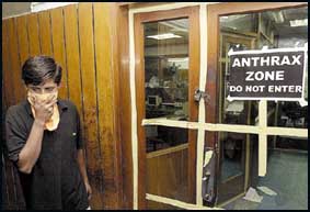 انتشرت موجة ذعر وفزع داخل مؤسسة الجانج للإعلام والنشر في باكستان بعد أن أثبتت الاختبارات وجود بكتريا الجمرة داخل بريد كان قد أرسل الى مقر المؤسسة . وقالت وكالة برس ترست الهندية إن الادارة قامت بإعطاء هيئة العاملين المضادات الحيوية اللازمة كما استخدمت متخصصين في مجال المايكرو بايولجي لتعقيم غرفة التحرير الرئيسة بصحيفة جانج في كراتشي .