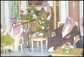 وخاطب سموه أصحاب الفضيلة العلماء لدى استقباله في قصر سموه بالرياض أمس وبحضور صاحب السمو الملكي الأمير سلطان بن عبدالعزيز النائب الثاني لرئيس مجلس الوزراء ووزير الدفاع والطيران والمفتش العام سماحة المفتي العام للمملكة رئيس هئية كبار العلماء ورئيس ادارة البحوث العلمية والافتاء الشيخ عبدالعزيز بن عبدالله آل الشيخ وفضيلة رئيس مجلس القضاء الأعلى الشيخ صالح بن محمد اللحيدان ومعالي وزير العدل الدكتور عبدالله بن محمد آل الشيخ ومعالي وزير الشؤون الإسلامية الشيخ صالح بن عبدالعزيز آل الشيخ ومعالي رئيس ديوان المظالم المكلف وفضيلة رئيس هيئة التحقيق والادعاء العام وفضيلة نائب رئيس هيئة الامر بالمعروف والنهي عن المنكر وفضيلة نائب رئيس هيئة التحقيق والادعاء العام ..وأصحاب الفضيلة أعضاء هيئة كبار العلماء وأعضاء مجلس القضاء الاعلى وأعضاء هيئة التمييز ورؤساء المحاكم وأعضاء ديوان المظالم وأعضاء هيئة التحقيق والادعاء العام وأعضاء اللجنة الدائمة للافتاء ومنسوبي وزارة العدل ومنسوبي وزارة الشؤون الإسلامية والاوقاف والدعوة والارشاد وأعضاء هيئة الامر بالمعروف والنهي عن المنكر .