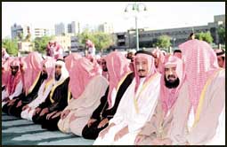وقد تقدم المصلين أصحاب السمو الملكي الأمراء والعلماء والمشايخ .