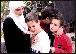 وقف أسامة أبو أمونة «41 عاما» فوق ركام منزله بين أزقة المخيم وهو يحتضن اثنين من أطفاله التسعة وبجانبه زوجته يحاول عبثا حبس دموعه وحوله عدد من جيرانه يهدئون من روعه.