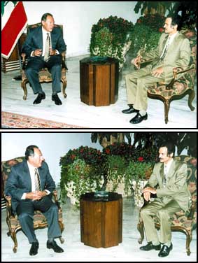 لا يمكن لأحد أن يتهم لبنان بالارهاب، فالشعب اللبناني حرر أرضه من الاحتلال، وهذا حقه الطبيعي، يجب النظر الى اسباب الوصول الى هذه الحالة ومتابعة الاعمال الارهابية التي تقوم بها اسرائيل، فما يجري في الأراضي الفلسطينية المحتلة ضد الفلسطينيين الآمنين دليل على ان رئيس وزراء اسرائيل شارون لم يبدل سياسته العدوانية».