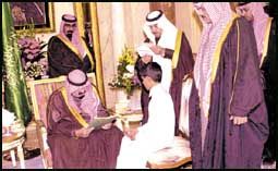 كما استقبل صاحب السمو الملكي الأمير عبدالله بن عبدالعزيز ولي العهد نائب رئيس مجلس الوزراء ورئيس الحرس الوطني في قصر سموه بالرياض مساء أمس معالي الدكتور أحمد محمد علي رئيس البنك الإسلامي للتنمية ووفداً يمثل جرحى انتفاضة القدس الذين قدموا لسمو ولي العهد شكرهم وتقديرهم على ما لقوه من عناية طبية وخدمات علاجية فائقة أثناء تلقيهم العلاج فى مستشفيات المملكة العربية السعودية منوهين بالدعم المستمر من المملكة العربية السعودية للقضية الفلسطينية على المستويات كافة كما قدموا تهنئتهم لسمو ولي العهد بشهر رمضان المبارك. وحضر الاستقبالين صاحب السمو الأمير بندر بن محمد بن عبدالرحمن وصاحب السمو الأمير عبدالله بن محمد بن عبدالعزيز آل سعود وأصحاب السمو الملكي الأمراء وعدد من المسؤولين.