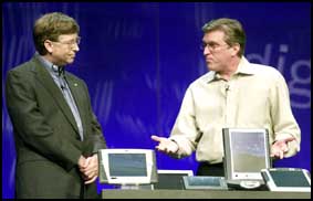 كما عرضت مايكروسوفت لجهاز كمبيوتر جيب محمول متطور للغاية يعمل تلقائيا عند اخراجه ومزود بجهاز استشعار يمكنه من التحول اتوماتيكيا الى جهاز (ديكتافون) عند تقريبه من الوجه. وكان هناك ايضا عرض لجهاز كمبيوتر جيب يحتوي على تقنية متطورة للرسوم البيانية بامكانه عرض بعض المؤثرات الخاصة مثل تأثير سقوط الأمطار على بحيرة ما.