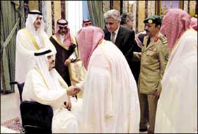 واستقبل خادم الحرمين الشريفين الملك فهدبن عبدالعزيز آل سعود حفظه الله في الديوان الملكي بقصر الصفا بمكة المكرمة عقب صلاة عيد الفطر المبارك صباح امس صاحب السمو الشيخ خليفة بن حمد ال ثاني ودولة رئيس وزراء لبنان رفيق الحريري ومعالي رئيس مجلس النواب في الجمهورية اليمنية الشيخ عبدالله بن حسين الاحمر وصاحب السمو الملكي الامير مولاي اسماعيل بن عبدالله بن محمد الخامس ومعالي الامين العام لمنظمة المؤتمر الاسلامي الدكتور عبدالواحد بلقزيز وصاحب السمو الشيخ خالد بن سحيم آل ثاني وصاحب السمو الشيخ جاسم بن خليفة بن حمد آل ثاني وصاحب السمو الشيخ محمد بن فهد بن علي آل ثاني.