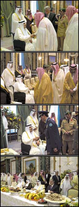 استقبل خادم الحرمين الشريفين الملك فهد بن عبدالعزيز آل سعود حفظه الله في الديوان الملكي بقصر الصفا بمكة المكرمة عقب صلاة عيد الفطر المبارك صباح أمس صاحب السمو الشيخ خليفة بن حمد آل ثاني ودولة رئيس وزراء لبنان رفيق الحريرى ومعالي رئيس مجلس النواب في الجمهورية اليمنية الشيخ عبدالله بن حسين الأحمر وصاحب السمو الملكي الأمير مولاي إسماعيل بن عبدالله بن محمد الخامس ومعالي الأمين العام لمنظمة المؤتمر الإسلامي الدكتور عبدالواحد بلقزيز وصاحب السمو الشيخ خالد بن سحيم آل ثاني وصاحب السمو الشيخ جاسم بن خليفة بن حمد آل ثاني وصاحب السمو الشيخ محمد بن فهد بن علي آل ثاني.