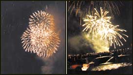 (الجزيرة) التقت خبير الالعاب النارية والمشرف على الالعاب النارية في المواقع الثلاثة لاطلاق هذه الالعاب احمد كعكور الذي قال ان احتفالات هذا العام سيتم فيها اطلاق قرابة 7500 قذيفة ألعاب نارية في المواقع الثلاثة على ثلاثة ايام بواقع 2500 قذيفة في كل يوم.