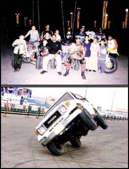 قدم عدد من الشباب السعوديين المحترفين في قيادة الدبابات النارية والسيارات «العرجاء» عروضاً مثيرة وخطرة للغاية خلال فعاليات الاحتفال بالعيد هذا العام.