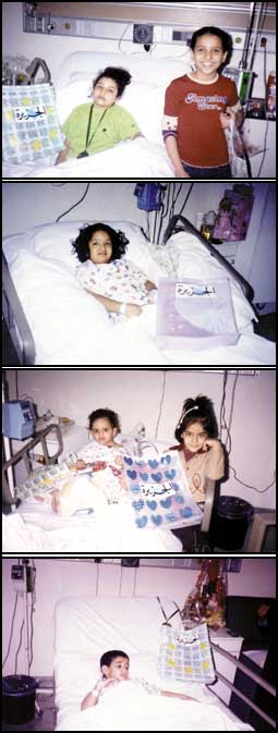 * في صالح المطيري.. طفلة صغيرة جداً لديها (سعال ديكي) كانت فرحة بوجود أخواتها الثلاث بجوارها حيث كانت تضحك.. لم تتكلم لصغر سنها الا ان اخواتها تقبلن التهاني بالنيابة عنها وشكرن الجزيرة على الزيارة.