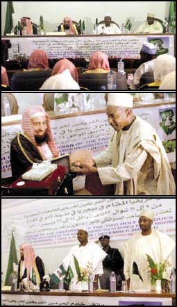 واستعرض الجهود الكبيرة التي اسهمت في تطوير العلاقات السعودية النيجرية وذكر منها تعليم القرآن الكريم والدورات التدريبية والتعليمية وهذا الملتقى يعد إحدى ثمرات هذه العلاقات السعودية النيجيرية بعد ذلك قدم معالي مدير الجامعة الاسلامية في المدينة المنورة د. صالح العبود هدايا تذكارية بهذه المناسبة لكل من حاكم ولاية كانو وحاكم ولاية بوعش ووزير الشؤون الاسلامية في ولاية زمبران وممثل حاكم ولاية بوبي وسفير نيجيريا لدى المملكة ونائب حاكم ولاية كانو، وسكرتير حاكم ولاية كانو ورئيس مراسم ولاية كانو ومستشار ولاية حاكم كونو للشؤون الدينية ورئيس القضاة في كانو ود. أمين الدين ابو بكر و الملحق الديني السعودي في نيجيريا بعد ذلك بدأت جلسات الملتقى.