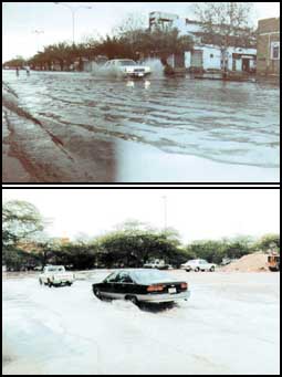 وبدت شوارع الرياض في أول أيام الاختبارات مزدحمة ومليئة بمياه الأمطار وسط استنفار أمني من المرور والدوريات الأمنية وأجهزة الدفاع المدني تسهيلاً لمرور الطلاب والطالبات لمدارسهم بيسر وسهولة.
