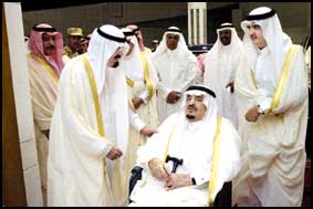 وحضر الاستقبال صاحب السمو الملكي الأمير عبدالله بن عبدالعزيز ولي العهد نائب رئيس مجلس الوزراء ورئيس الحرس الوطني وصاحب السمو الملكي الأمير سلطان بن عبدالعزيز النائب الثاني لرئيس مجلس الوزراء وزير الدفاع والطيران والمفتش العام واصحاب السمو الملكي الامراء.