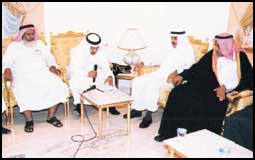 في إطار نشاطها النصف شهري استضافت ثلاثية المشوح مساء الثلاثاء الماضي «28/12/1422ه» الأستاذ خالد بن حمد المالك رئيس تحرير جريدة الجزيرة ليتحدث عن مبادرة صاحب السمو الملكي الأمير عبدالله بن عبدالعزيز من أجل وقف حمام الدم في الأراضي الفلسطينية، والوصول الى سلام شامل وعادل، تعود من خلاله الأراضي العربية المغتصبة في كل من فلسطين وأرض الجولان السورية الشقيقة الى أصحابها بعد انسحاب إسرائيل منها.