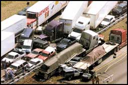 تسبب الضباب الكثيف الذي غطى شوارع إحدى المدن الأمريكية بوقوع سلسلة من الحوادث لأكثر من 75 سيارة، مما أدى إلى مقتل 5 أشخاص وإصابة العشرات.