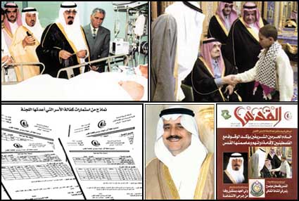 ومنذ انتفاضة الشعب الفلسطيني المباركة عملت المملكة قيادة وحكومة وشعبا على الوقوف مع هذه الانتفاضة، وصدر الامر السامي الكريم رقم 8636 وتاريخ 18/7/1421ه القاضي بتشكيل لجنة عليا برئاسة صاحب السمو الملكي الامير نايف بن عبدالعزيز وزير الداخلية لوضع الضوابط والنظم لجمع التبرعات وصرفها، ومتابعة وصولها الى مستحقيها في فلسطين دعم انتفاضة القدس الشريف.