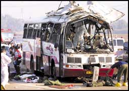 لم يكن بمقدور شارون أن يفعل احسن مما فعل. وكان كيل اللوم للفلسطينيين والاستخدام المفرط لكلمة إرهاب التي اظهر إحصاء مبدئي أنها تكررت 50 مرة خلال عشر دق.........