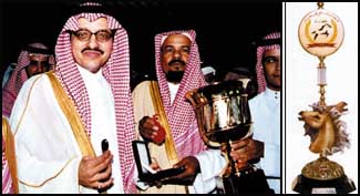 وعن دعم سموه السخي لميدان الجنادرية قال أبو خالد ان هذا الميدان يستحق المؤازرة والتثمين لما له من فوائد عديدة تعود على ملاك الخيل، مضيفاً ان هذا الميدان شهد سطوع نجم أبرز خيول الانتاج وان موقعه بالقرب من مزارع الخيل والميدان الرئيسي جعل من الضروري أن يكون في المستوى اللائق به. وعن دعم سموه للاسطبلات الصغيرة في سباقات المصيف بالطائف في العام الماضي كأول مهرجان تقدم فيه تلك الجوائز العينية والمادية بهذا الحجم قال سموه ان ميدان الحوية من أعرق الميادين في المملكة ولسباقات المصيف مكان بارز في نفوس أهل الخيل.