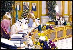 رأس خادم الحرمين الشريفين الملك فهد بن عبدالعزيز آل سعود حفظه الله الجلسة التي عقدها مجلس الوزراء بعد ظهر أمس الاثنين في قصر السلام في محافظة جدة.