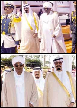 وبعد استراحة قصيرة في المطار تناولا خلالها القهوة العربية غادر فخامة الرئيس عمر حسن البشير يرافقه صاحب السمو الملكي الامير عبدالله بن عبدالعزيز في موكب رسمي الى المقر المعد لاقامته.. ويرافق فخامته وفد رسمي يضم معالي مستشار الرئيس للشئون السياسية الدكتور قطبي المهدي ومعالي وزير رئاسة الجمهورية الفريق أول ركن صلاح محمد صالح ومعالي وزير الخارجية الدكتور مصطفى عثمان اسماعيل.
