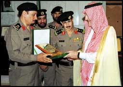 وقد سلم لسموه خلال اللقاء التقرير السنوي لقوات أمن الطرق الذي اشتمل على الجهود التي بذلها رجال أمن الطرق خلال العام المنصرم 1422هـ كما تسلم سموه درعاً تذكارياً بهذه المناسبة.