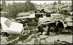 مقبرة السيارات هكذا هي الحال.. بعد أن لقيت حتفها ودفنت نفسها ودفنت أصحابها.. لتبقى شاهداً على عصر التهور ونزيف الحوادث المؤلمة.